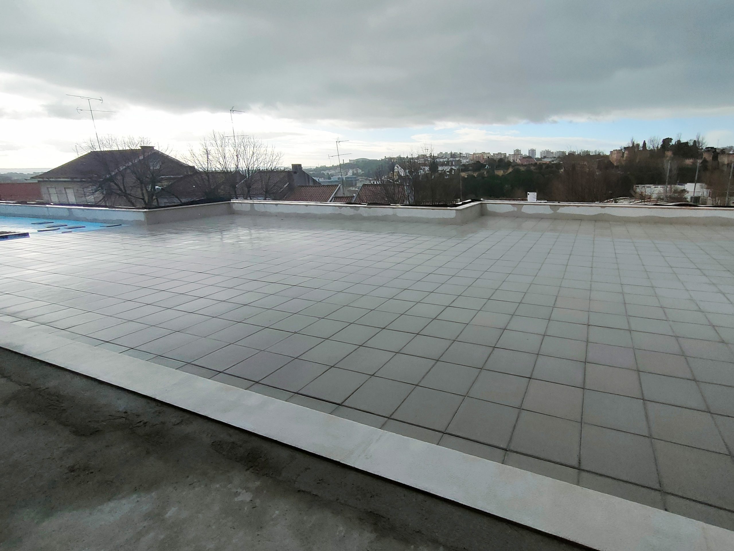 – Aplicação de pavimento amortecedor de segurança in-situ EPDM com 50 mm de espessura, na cor azul.