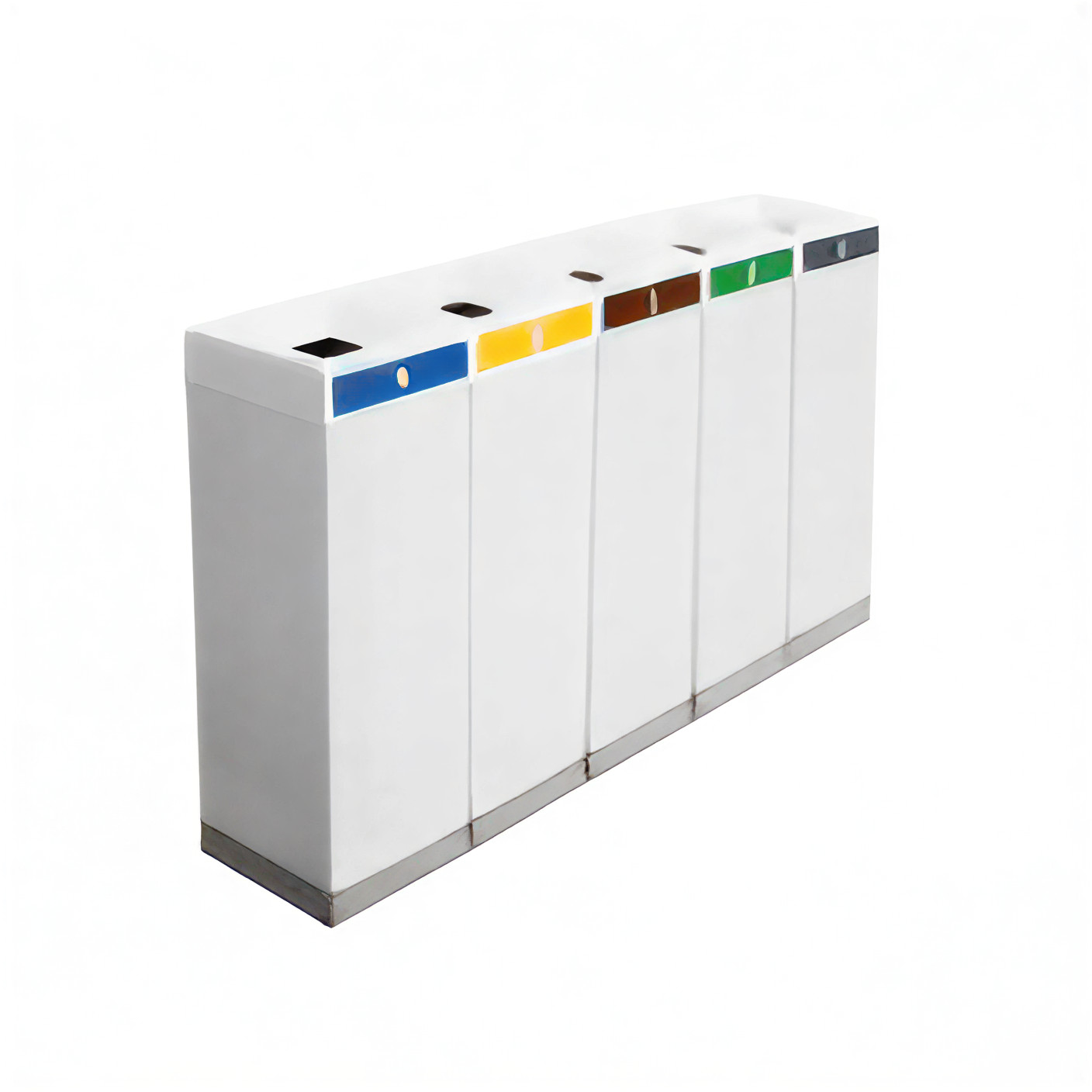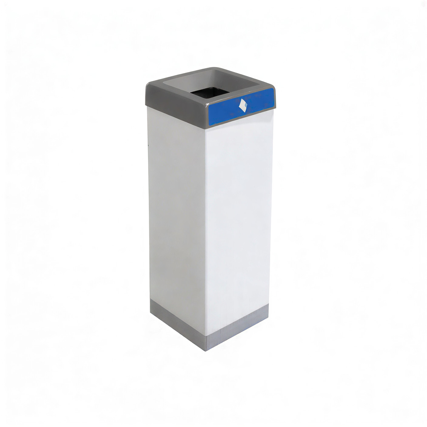 Modelo de papeleira económico. Inclui autocolante com várias opções de cores e símbolos de resíduos, para colocar na tampa, identificando os resíduos a depositar.