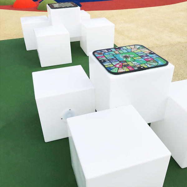 Módulo desenhado em polietileno de média densidade, com tabuleiro de jogo composto por policarbonato e fibra de vidro, o que lhe confere alta resistência contra danos de uso. Disponível em 12 tabuleiros de jogo à escolha.