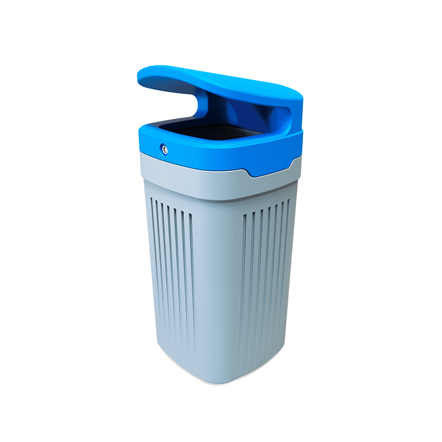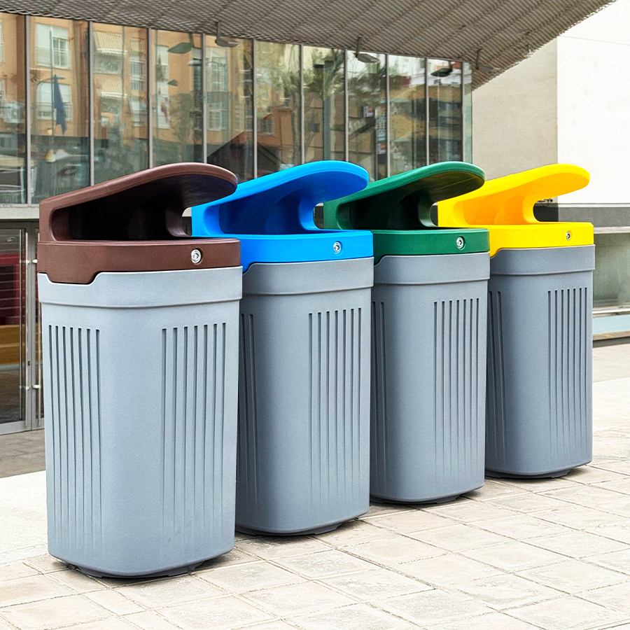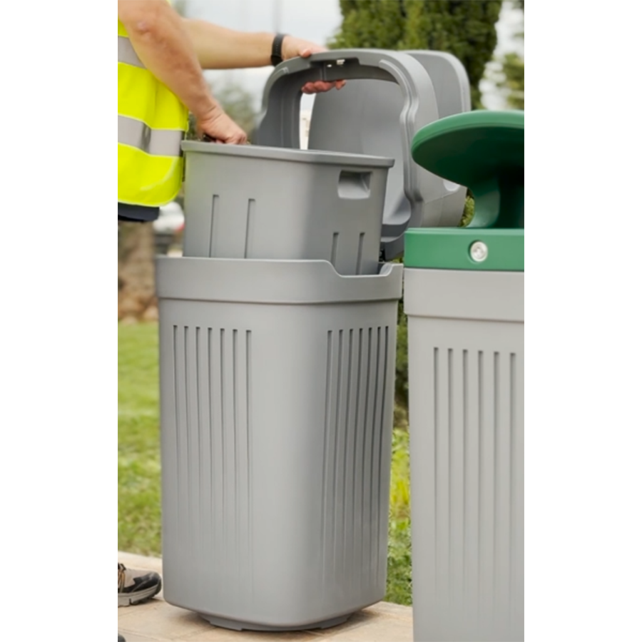 – Corpo e contentor interior da papeleira em polietileno de alta densidade, 100% reciclado e reciclável.