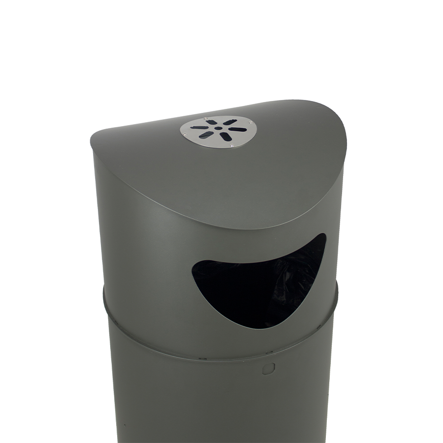 Modelo de papeleira disponível com ou sem cinzeiro integrado na parte superior da tampa.
